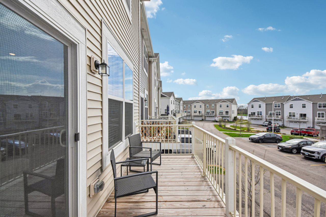 Welcome to this contemporary end-unit townhome in the desirable Park Pointe community. This Chatham model features an open-concept main level highlighted by a gourmet kitchen with quartz countertops, a center island, stainless steel appliances, and a spacious walk-in pantry. The living area offers direct access to a private deck, perfect for outdoor relaxation. The upper level includes three bedrooms, featuring a primary suite with a walk-in closet and a double-vanity ensuite. For convenience, the laundry room is located on the second floor. The finished lower-level bonus room provides versatile space for a home office or gym. This smart home includes a video doorbell and remote thermostat access. Located near the Illinois Prairie Path, Fox River Trail, Koehler Fields, and easy access to 25, 31, and 59. Well run association covers your exterior maintenance, lawn care, and snow removal. Turnkey & move-in-ready! This is the one you've been waiting for