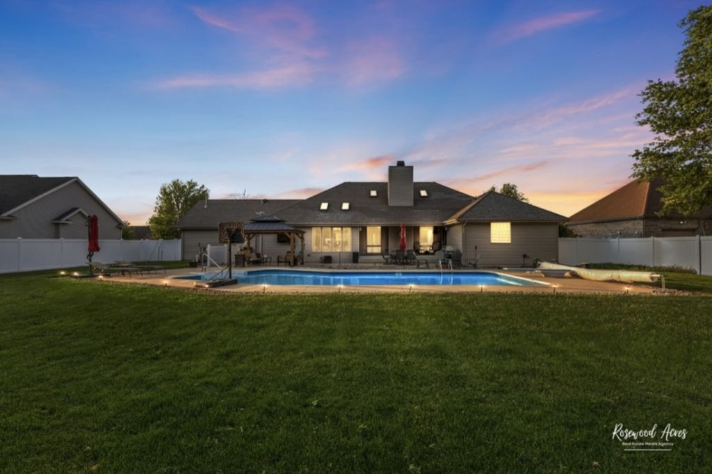 Exceptional 3BR, 3.5BA home in highly sought-after River Bend Subdivision within Herscher School District! Built in 1998 by Designs Unlimited, this well-maintained home offers 2,100 sq ft on the main level plus a full basement with approx. 1,400 sq ft of beautifully finished space. The main level features spacious, light-filled living areas with a cozy gas fireplace, vaulted and trayed ceilings, and stunning new solar-shaded skylights (2025). The main level of the home features a 5-room sound system. The updated kitchen boasts a new breakfast bar, 5-stage reverse osmosis system, and newer, stainless steel appliances-all included-along with convenient main-level laundry (washer/dryer stay). The home offers ample closet space throughout. The finished basement is built for entertaining and everyday living, offering a large game room, additional family room, private study, full bath, and extensive storage areas. The basement also features Bose surround sound system. Enjoy in-floor radiant heat powered by a newer on-demand boiler (2023), with additional radiant heat in upstairs tile areas. Battery backup sump pump adds extra peace of mind. Step outside to your private backyard oasis! Fully enclosed with a white PVC fence, this incredible space features an 8' deep in-ground pool with diving board, gazebo, firepit area, and a 12x16 storage shed-perfect for summer entertaining and relaxing evenings. Major updates provide peace of mind, including new roof (2025), new skylights (2025), on-demand water heater (2024), on-demand boiler system (2023), high-efficiency furnace, and more. Additional highlights include heated 3.5-car garage, with a new heater, and Brinks security system. A rare find offering space, upgrades, and resort-style outdoor living-this one truly has it all!