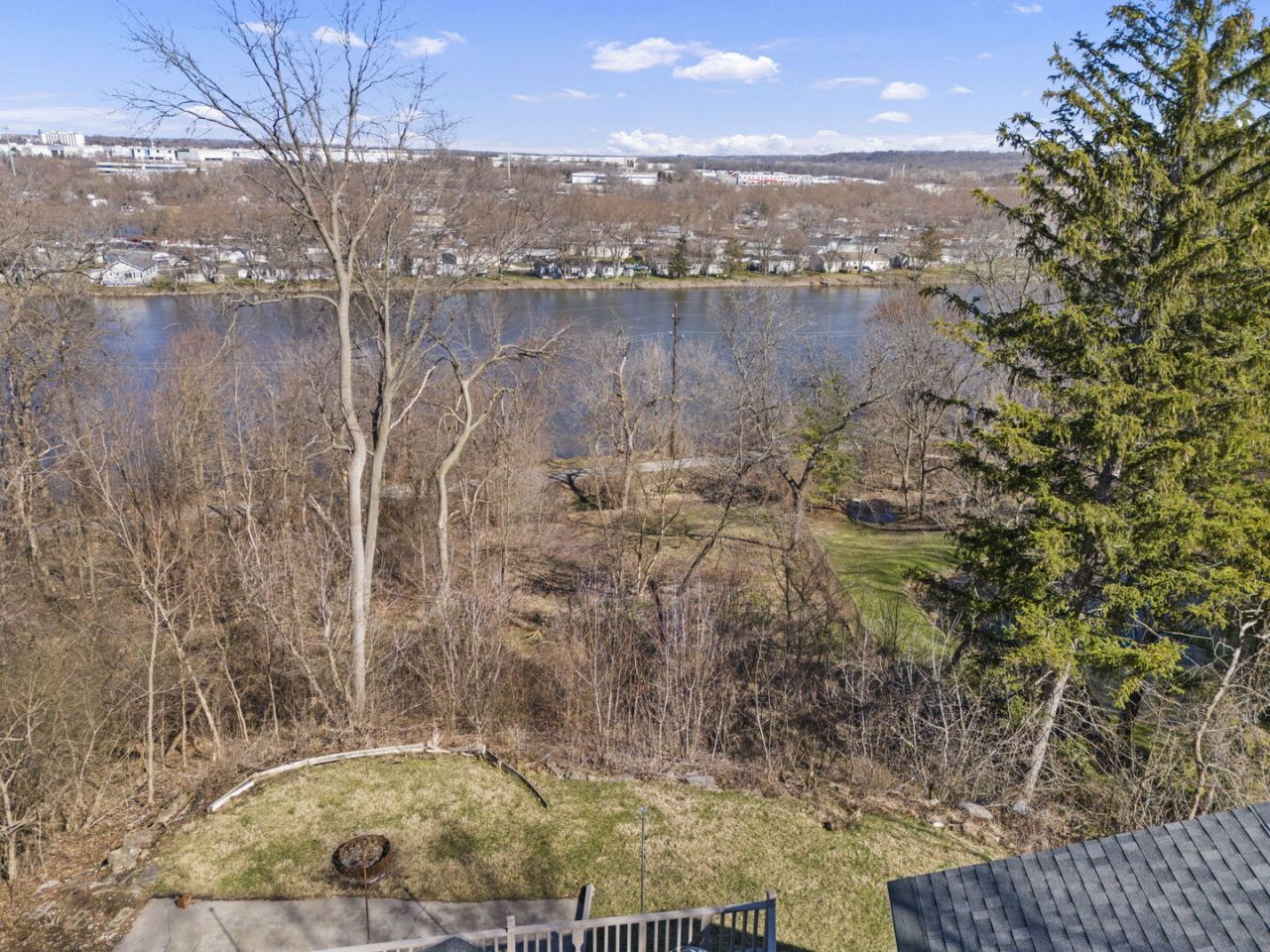 Highly sought-after location on River Bluff Road at the north end of Elgin, near the Cook/Lovell Historic District and Spring-Douglas Historic District-surrounded by beauty in every direction. Perched atop the bluff overlooking the Fox River, this unique property includes three parcels totaling over 1 acre of land! The wooded backyard slopes gently down to the Fox River Bike Trail, and the riverfront shoreline is also conveyed with the sale. Panoramic views steal the show both inside and out. The kitchen, dining room, and main floor primary suite all take full advantage with expansive windows that bring the scenery in. Refinished hardwood floors, fresh paint, updated electrical, and remodeled bathrooms provide the perfect blend of character and modern updates. With 2,745 square feet across three levels, there's space to spread out and enjoy. The impressive 400 sq ft living room highlights the warmth and charm of the original hardwood floors. A truly unique feature-the main floor primary suite with vaulted ceilings and full bath-is accessed through a hidden bookcase built into the living room wall! Upstairs, you'll find two additional bedrooms with beautiful hardwood floors and a recently remodeled full bathroom. The inviting family room features a cozy corner fireplace, while the walkout basement offers abundant storage and flexible space for entertaining, hobbies, or recreation. All of this in a wonderful neighborhood just minutes from I-90, the Metra train, restaurants, shopping, and the Hemmens Cultural Center. This is a rare opportunity to own over an acre in town, enjoy exceptional privacy, and take in breathtaking Fox River views from one of Elgin's most scenic settings. Sold AS IS.