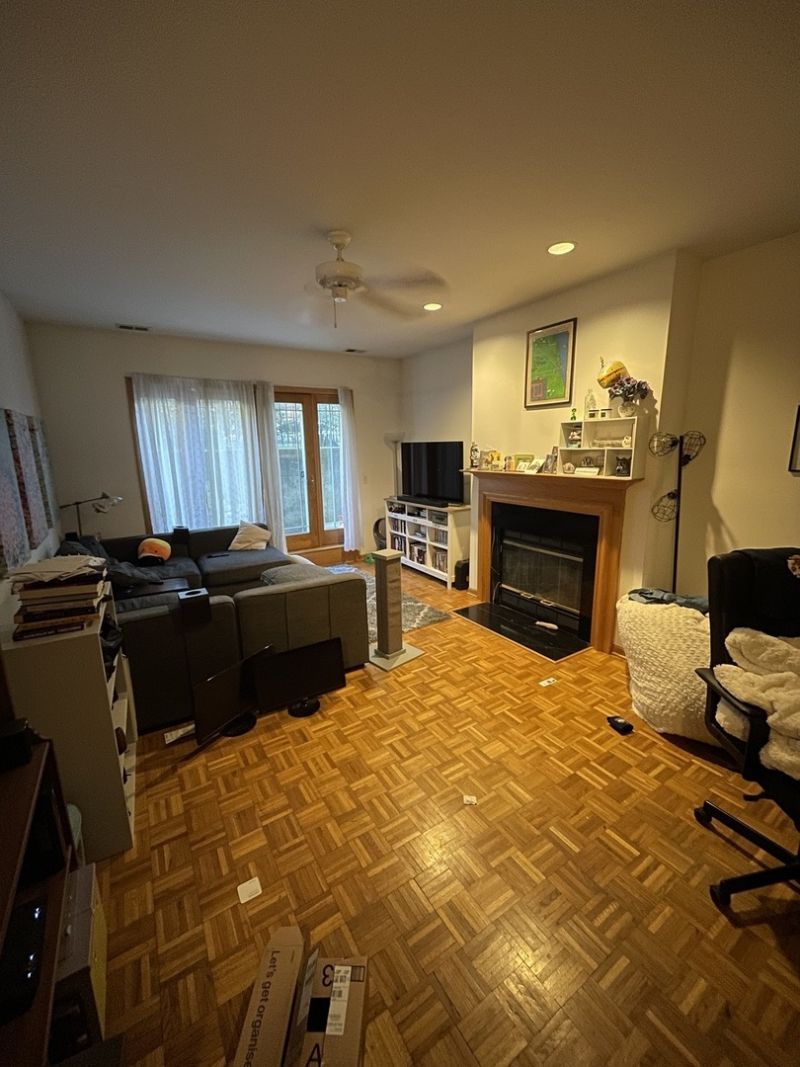 Parquet floors, large living room, huge primary suite bedroom, 42 cabinets, dishwasher and microwave, granite countertops, gas fireplace, private patio, gated parking available, 2 blocks away from Sheridan Red Line. Laundry room on site. Cats are welcome ($25/pet/month fee and $100 one time fee). $600 move in fee. Resident pays cooking gas, heat, and electricity. $35 utility fee that covers water, trash, and sewer