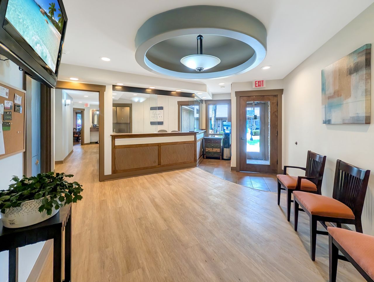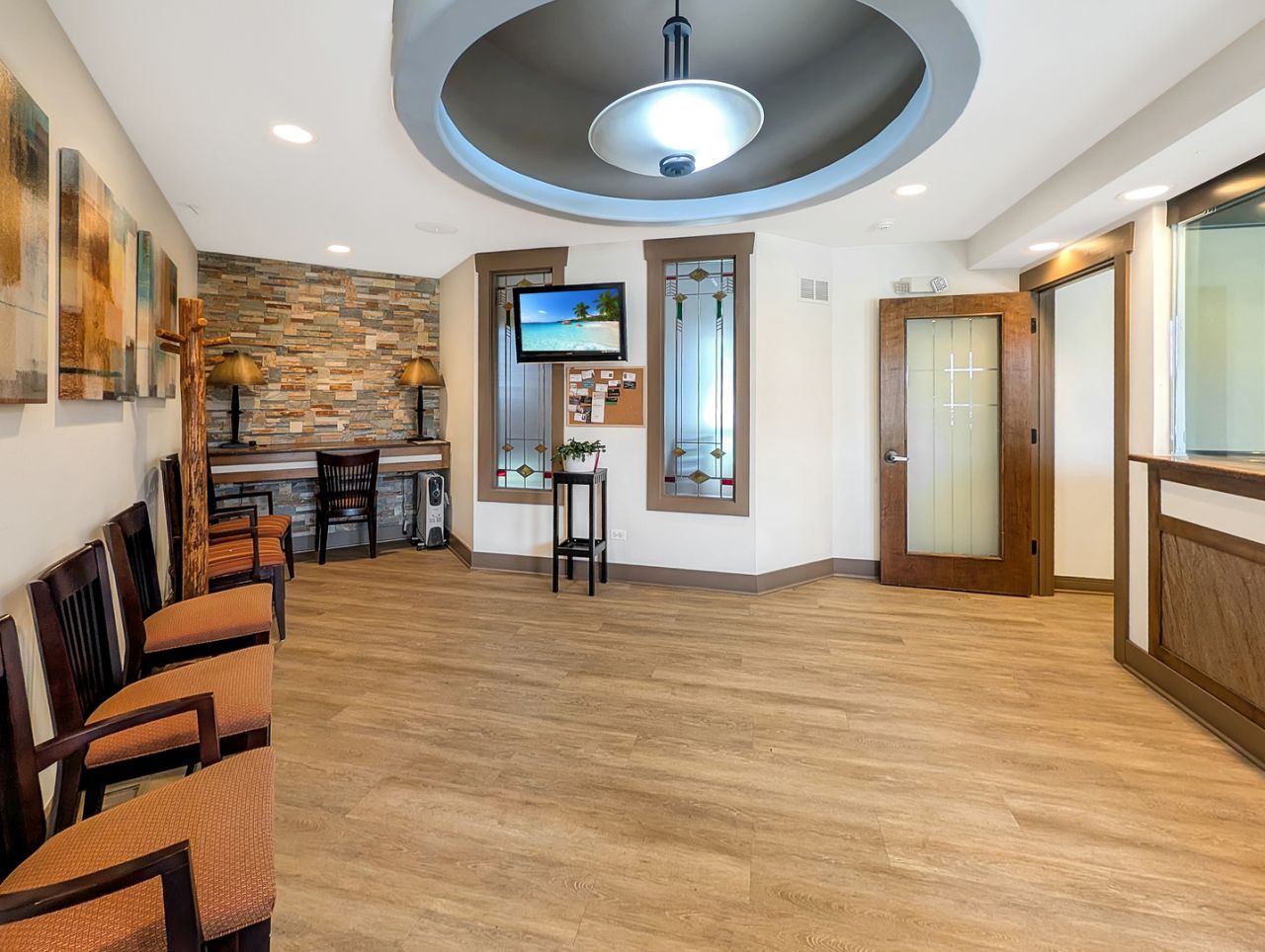The buildout already happened. Someone spent years and real money turning this space into something that works - and now it's available to the next operator who knows what they're looking at. Set inside a well-established office park on Crystal Lake Road, this 2,001 square foot unit was built out as a full-service dental practice. Nine private rooms. Two ADA-compliant bathrooms with granite countertops and wood-framed finishes. A reception area with a custom tray ceiling and wood desk that patients actually notice when they walk in. The details here were not an afterthought. The footprint follows a logical clinical flow: a foyer and waiting area that separate arrival from the back of house, a central corridor distributing traffic to individual rooms, and a private office near the front. Each treatment room carries the same finish level - dark flooring, wood blinds, aqua accent walls, plumbing and utility connections in place. Below one unit, an unfinished basement provides the kind of storage most office tenants spend years wishing they had. The property was originally built as two separate units. That division can be restored. A buyer looking to owner-occupy one side and lease the other has a clear path to do exactly that. A practice group that needs the full 2,001 square feet can take it whole. Medical, dental, counseling, professional services - the configuration adapts. What doesn't need to change is the first impression. That one's already built.