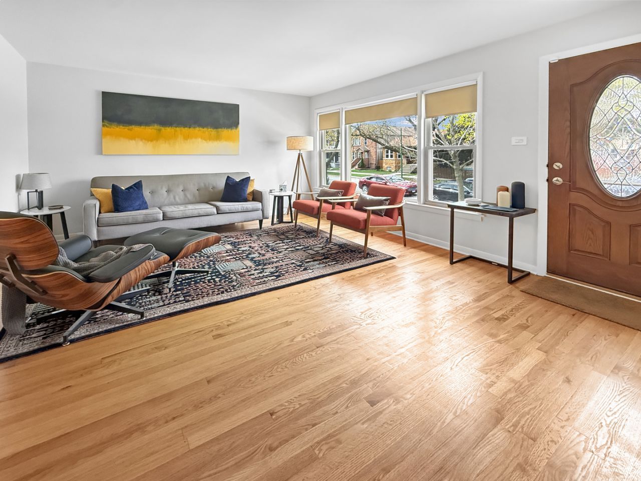 Gorgeous brick ranch in Jefferson Park offering 4 bedrooms and 2.1 baths. This well-maintained home provides exceptional flexibility with two modern kitchens-perfect for an in-law arrangement or additional living space. Recent updates include new wood flooring in the main kitchen, new countertops, and new appliances in both kitchens, along with a new side-by-side washer and dryer. Additional improvements include a 30-year architectural shingle roof, recent tuckpointing, and some new lighting fixtures. The finished lower level features a spacious second kitchen with a coffee bar, a large recreation room, and a full bath. Step outside to a inviting, large patio-ideal for entertaining. The oversized 2-car garage includes a convenient overhead door facing the patio, creating additional entertainment options. Located on a quiet side street while still close to expressways, Metra, CTA Blue Line, and everything Jefferson Park has to offer. A fantastic value for the space and versatility.
