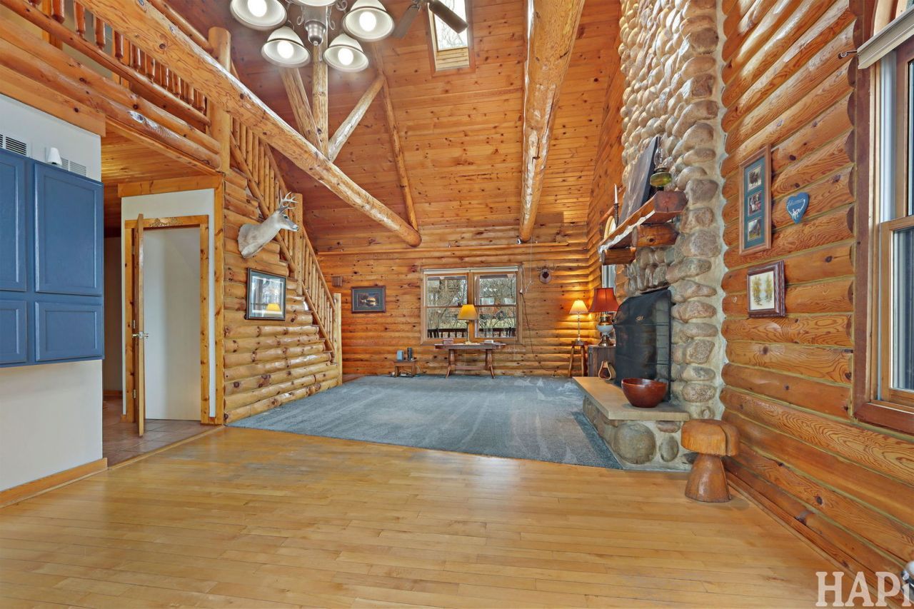 Welcome to this beautiful waterfront log home tucked away on a peaceful dead-end street, offering privacy, nature, and stunning surroundings. Inside, you'll find a gorgeous grand stone double-sided wood-burning fireplace, vaulted and beamed ceilings, beautiful skylights, and large windows that fill the home with natural light while framing peaceful views. Unique details throughout-including distinctive door knobs and charming finishes-add character you won't find in a typical home. The home features a desirable first-floor master bedroom, with three additional bedrooms upstairs and a massive loft perfect for a playroom, movie theater, game room, bedroom, or party space. A walkout basement provides additional living space and easy access to the backyard. Enjoy the outdoor lifestyle with lakefront views where you can canoe, fish, or paddle boat. Relax on the welcoming front porch or unwind on the expansive back deck overlooking the water. The beautiful yard is filled with mature trees, colorful flowers, and perennials, along with a charming tree swing and birdhouses that enhance the peaceful setting. Two deep attached garages including a backyard garage ideal for boat storage plus an outdoor shed provide plenty of space for vehicles, tools, and lake toys. Best of all, this waterfront gem is not located in a flood zone and is just minutes from downtown McHenry for dining, shopping, and entertainment. Peaceful, private, and full of character-this is lake living at its best.
