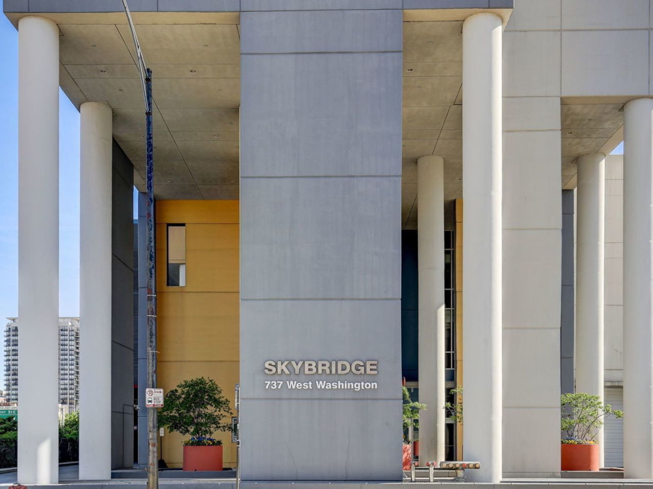 Welcome to Skybridge, where convenience, comfort, and remarkable city views meet in one of the West Loop's most desirable buildings. This exceptional and rarely available 1 bedroom, 1.5 bath residence offers a bright, open layout with floor-to-ceiling windows in living room and bedroom, an extra-long west-facing private balcony - perfect for enjoying sunset views, morning coffee, or relaxed evenings at home. One of only a select number of units in the building offering this unique blend of natural light, space, and outdoor living. The kitchen features granite countertops, stainless steel appliances, and a spacious breakfast bar that opens to the living area, creating an ideal setting for everyday living and entertaining. The primary suite comfortably fits a king-size bed and a spa-inspired bathroom with double vanity, soaking tub, and separate shower. A guest powder room, in-unit washer and dryer, and hardwood floors add both function and elegance. Skybridge is a full-amenity building offering a 24-hour doorman, fitness center, rooftop sun deck, private dog walk, bike room, and additional storage. Direct indoor access to Whole Foods provides unmatched convenience. Garage parking available for $35k. Located just steps from Randolph Street's renowned Restaurant Row, Fulton Market District, Greektown, parks, nightlife, and major transit - this is West Loop living at its finest.