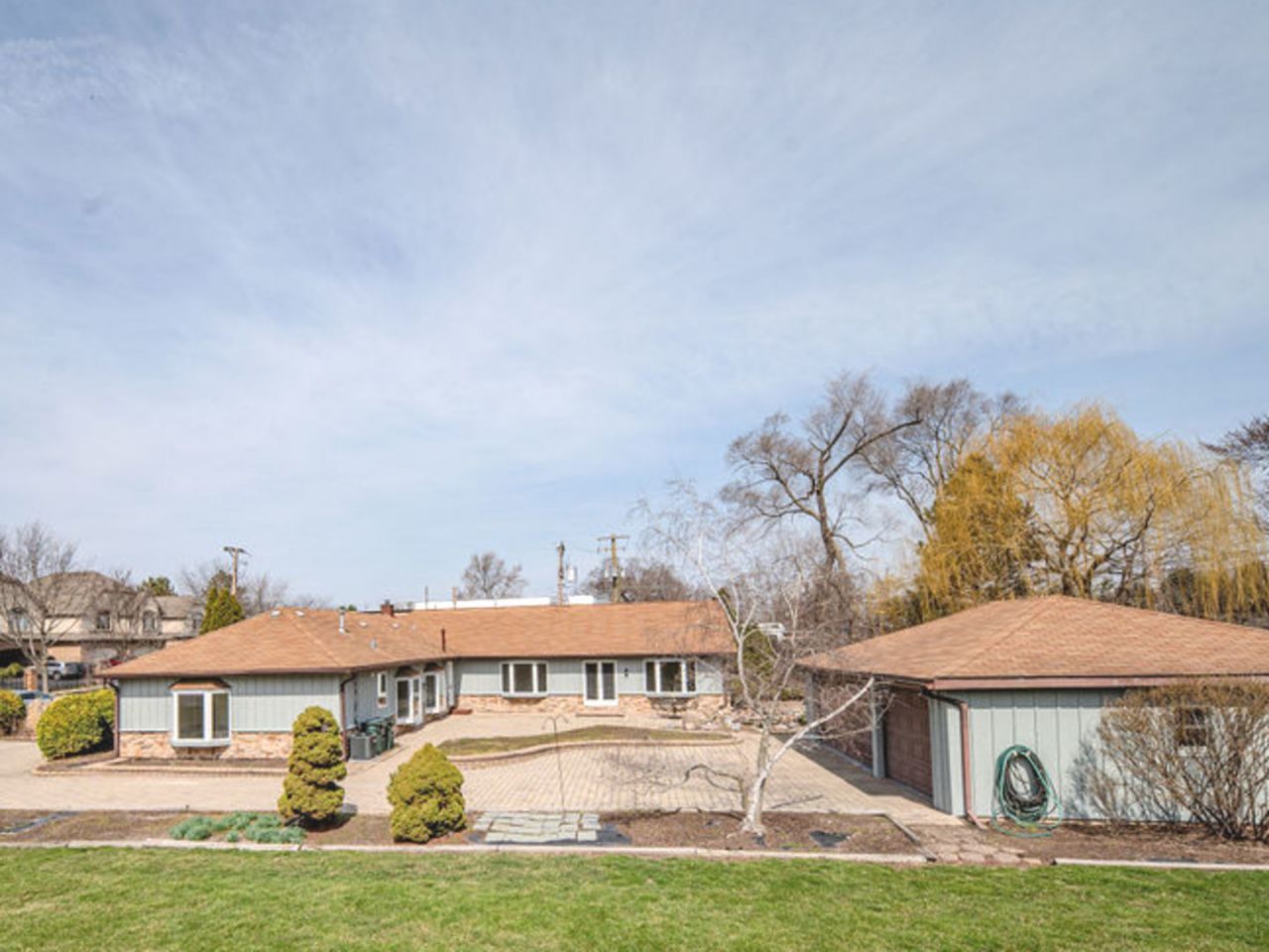 Step into style and space with this beautifully rehabbed brick ranch! Freshly painted and featuring gleaming new floors throughout. Offering 4,000 square feet of thoughtfully designed living space, this home perfectly blends comfort, flexibility, and modern updates.A rare find, the home boasts two private primary suites-ideal for in-law living, guest accommodations, or a private retreat. The inviting kitchen is equipped with granite countertops,big island,white cabinetry, and plenty of room for casual dining, while a separate formal dining room sets the stage for elegant entertaining. The expansive family room is perfect for relaxing nights in, and a dedicated home office provides the ideal space for work or quiet reading. Two additional spacious bedrooms and an updated bathroom complete the main level. Function meets convenience in the oversized 16x11 laundry room, featuring built-in counters, pantry storage, space for an extra refrigerator or freezer, and even a fully tiled dog shower. The finished basement with high ceiling offers a recreation room, utility room ,and abundant storage. Outside, enjoy a beautifully designed setting with a paver brick driveway leading to a heated three-car garage . The extended patio is ideal for entertaining, featuring space for dining, lounging, and a fire pit. A serene waterfall and koi pond create a peaceful backyard escape. Conveniently located near downtown Palatine, the Metra station, and top-rated schools, this exceptional home offers space, style, and versatility in one stunning package.