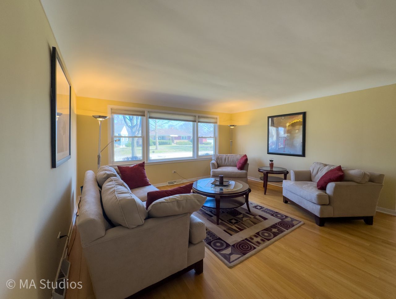 Rare opportunity to secure a significantly expanded home offering approximately 2,800 square feet, 5 bedrooms, and 3 full bathrooms in highly sought-after Morton Grove within the Park View School District. Originally a 2-bedroom ranch, the home was expanded in 2002 with a full second story, delivering the space today's buyers are looking for without relying on below-grade living. Finding this amount of above-grade square footage in this price range is rare. The main level features hardwood flooring, a bright living room with fireplace, separate dining room, family room off the kitchen, two bedrooms, and a full bathroom-designed for both everyday living and entertaining. The second level offers a spacious primary suite with Jacuzzi tub, separate shower, and private water closet, along with additional bedrooms and a large recreation room. 9-foot ceilings create an open, airy feel throughout. For buyers seeking additional upside, the home's footprint may allow for future basement expansion through methods such as benching to increase ceiling height. Buyers are encouraged to perform their own due diligence regarding feasibility, costs, and permitting. Additional highlights include two HVAC systems (one per level), a recently replaced first-floor furnace, generous room sizes, and a flexible layout. Enjoy outdoor living with a 30' x 12' deck and balcony, covered access from the two-car garage, and an attached gas grill-ideal for entertaining. Ideally located near parks, pool, tennis courts, forest preserves, Chick Evans Golf Course, Metra, and I-94 with convenient access to downtown Chicago. Offered furnished if desired. Check out the provided 3D Virtual Reality tour for a full interactive walk-through. This is a compelling opportunity for buyers looking for space, location, and value-schedule your showing before it's gone.