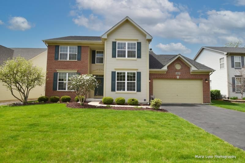 Exceptional home located on a quiet interior street just steps from the Great Western Trail! The foyer welcomes you in and leads to the living and dining room with stunning hardwood floors - the dining room has a charming arched doorway to kitchen! The main floor den has a French door entry and hardwood floors too! The kitchen offers 42 cabinets with crown molding trim, solid surface countertops, custom backsplash, SS appliances and eating space with buffet counter and slider with transom above to beautiful paver brick patio! Big 2-story family room with wall of built-ins, fireplace with matching wood mantle, wall of windows for great natural light and railed overlook from hallway above! The primary bedroom suite has a large walk-in closet and private bath with dual sink cultured marble top vanity, soaker tub and separate shower. Three generous size secondary bedrooms and a full hall bath with dual sink vanity and shower/tub combo. The full basement is full of possibilities for even more living space! There is plenty of space to enjoy the outdoors on your gorgeous paver brick patio framed by paver lined planting beds and a concrete area for your grill! 3-car tandem garage has loads of room for everything! The convenient location is just minutes from Otter Cove Waterpark, downtown St. Charles and the ever-popular Fox River Trails!